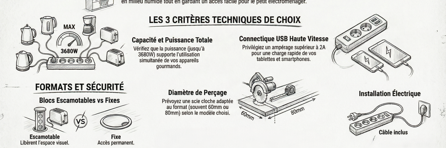 Meilleure prise encastrable pour plan de travail 2026 : guide technique et comparatif